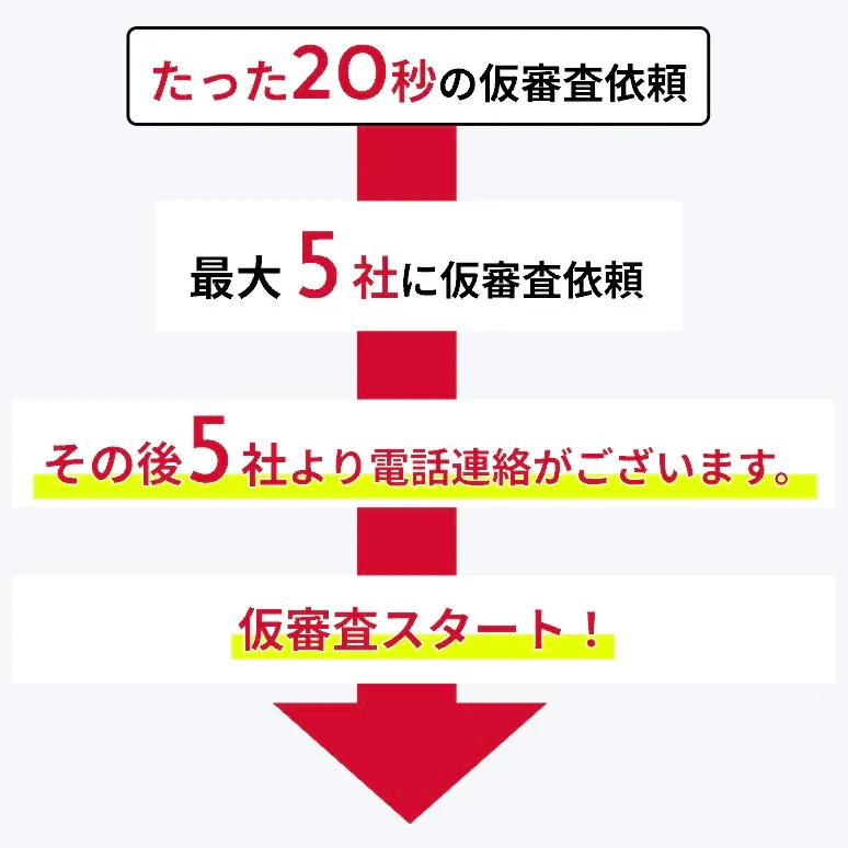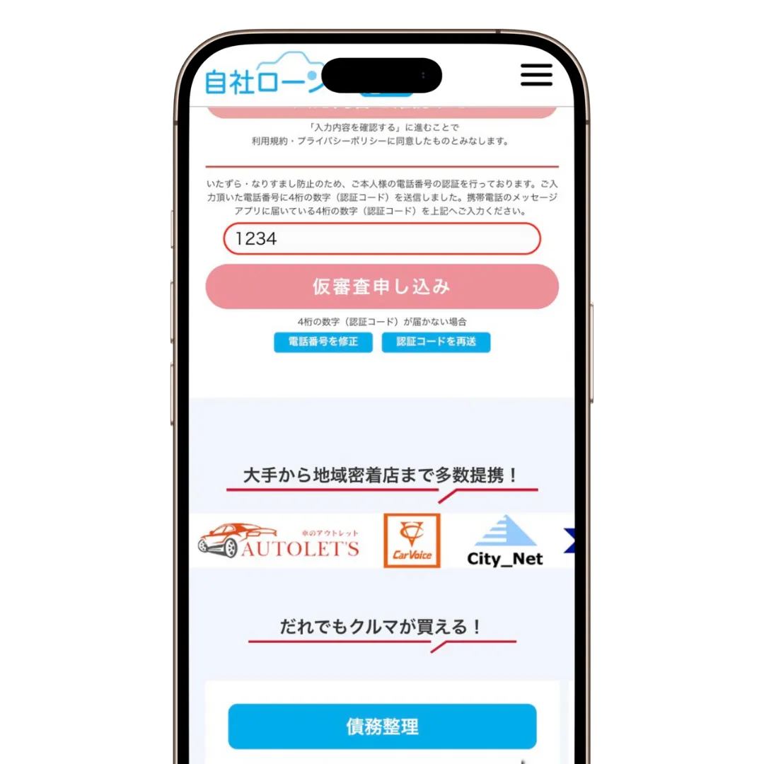 ここまでの内容で、「自社ローンの窓口いいかも」と思えた人は、さっそく一括仮審査に申し込んでみましょう。申し込みはスマホで1分、審査結果は最短当日に届きます。