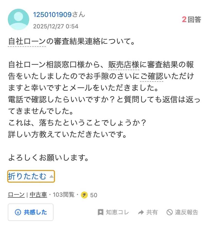 Yahoo!知恵袋に寄せられた自社ローンの窓口の質問に回答