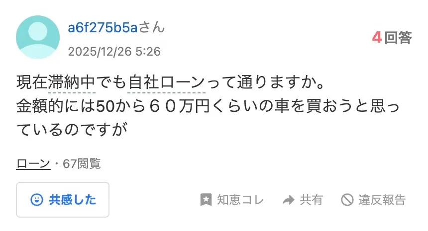 「Yahoo!知恵袋で自社ローンについての質問・回答はある?」