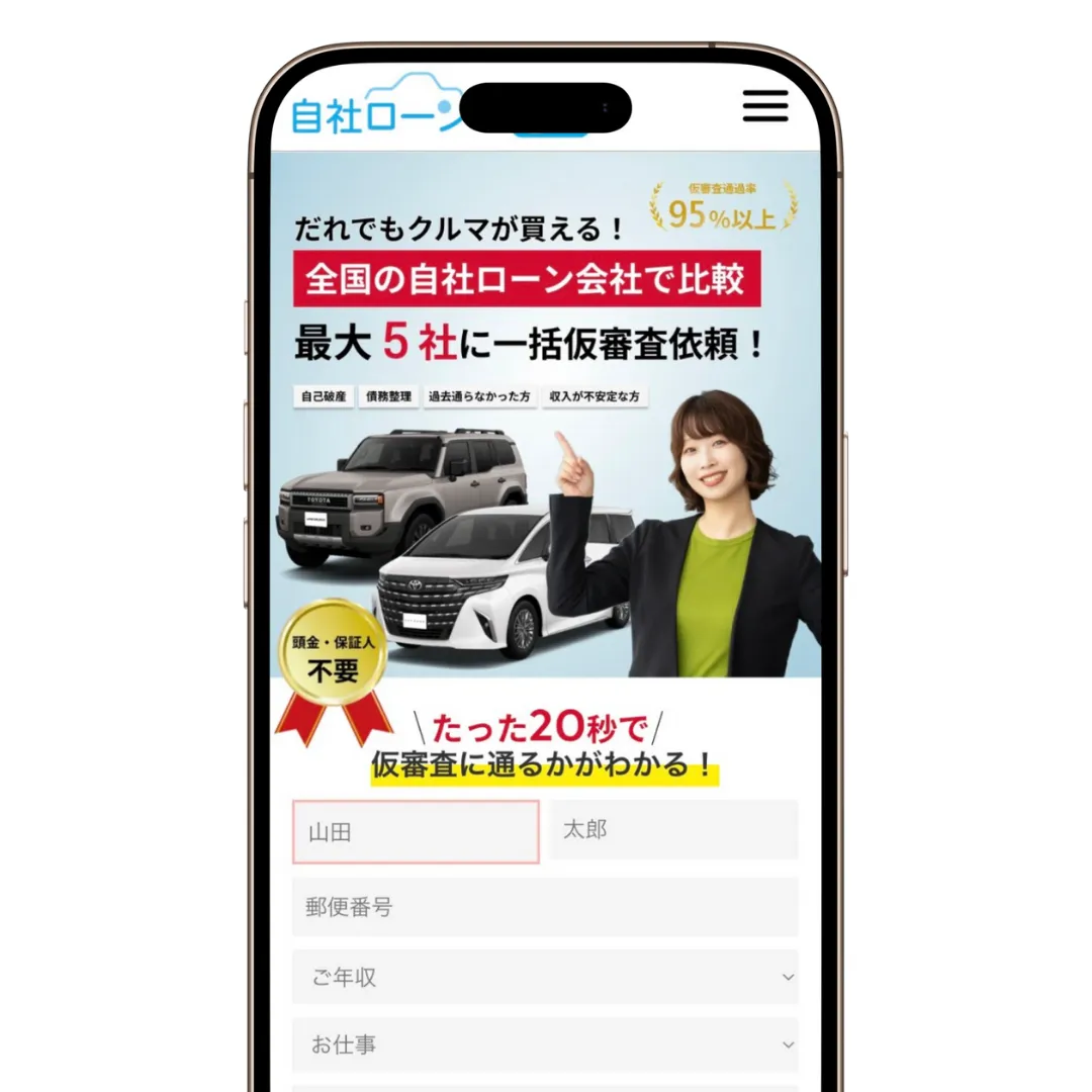 自社ローンの窓口は、最大5社の中古車販売店から自社ローンの仮審査結果を一括で受け取れるサービスです。大手から地域密着型の店舗まで、多数の中古車販売店が加盟しており、仮審査に通る自社ローンを効率よく見つけることができます。
