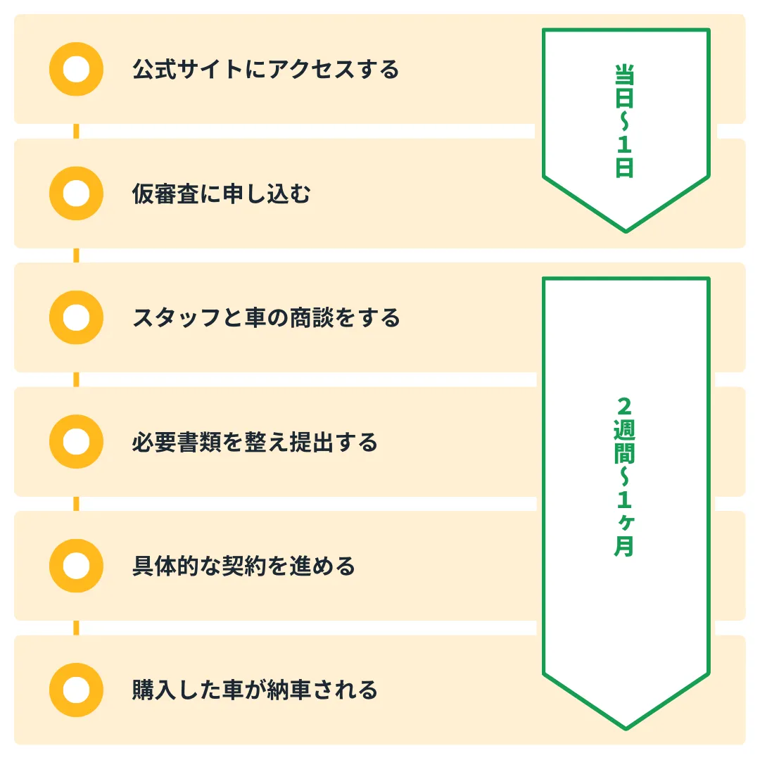 - ④申し込みから2週間〜1ヶ月で納車される