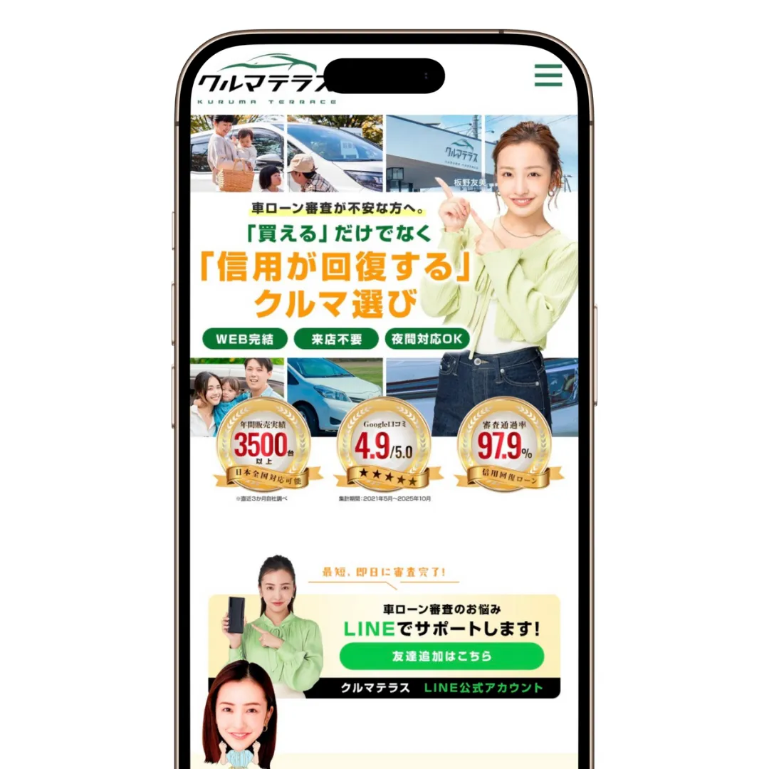 クルマテラスは業界大手の信用回復ローンであり、金利範囲が公式サイトで明確に示されています(3.9〜15.0%)。他の信用回復ローンと比べて低金利で利用できる可能性が高いです。