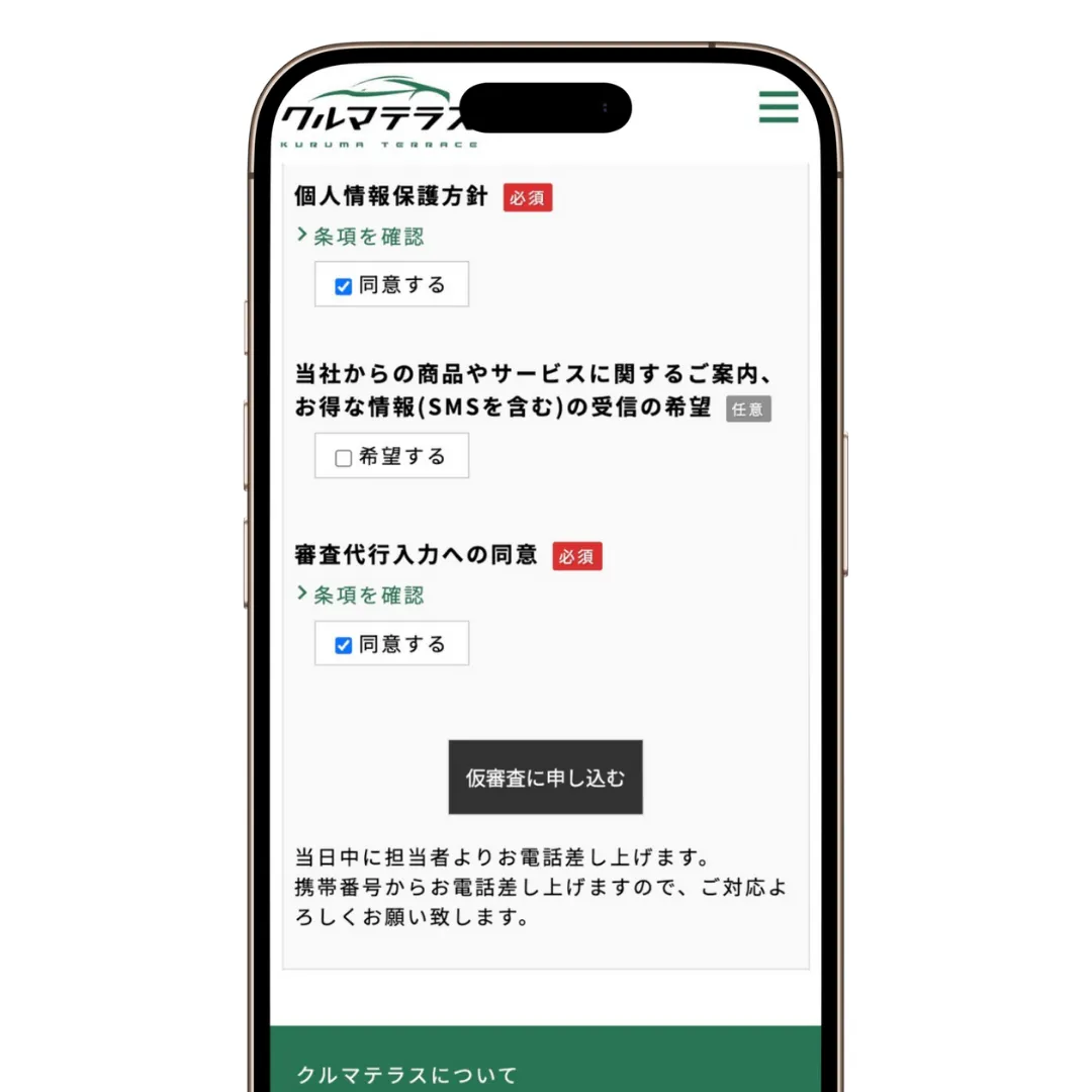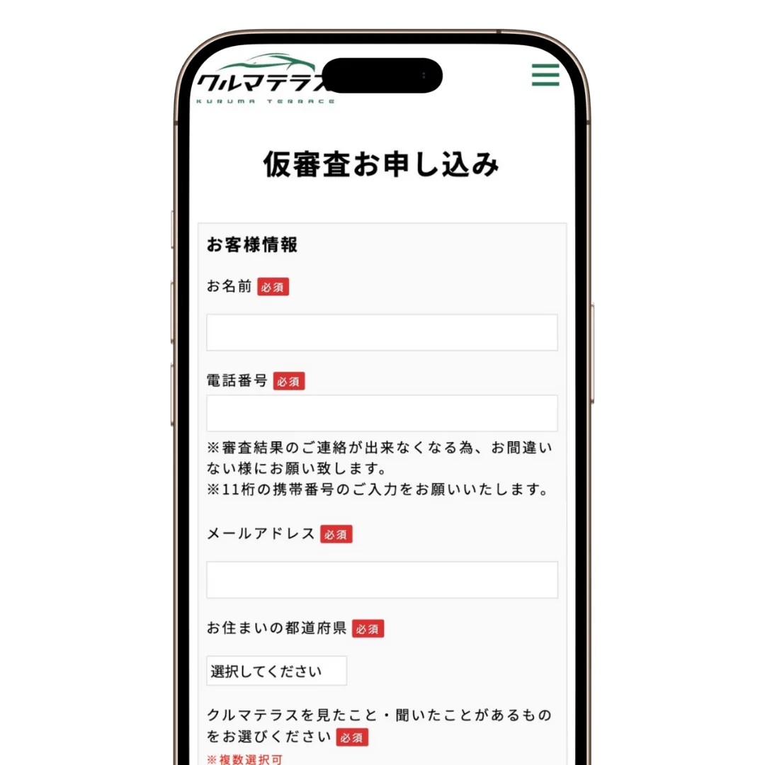 簡単1分!クルマテラスの仮審査に申し込む方法