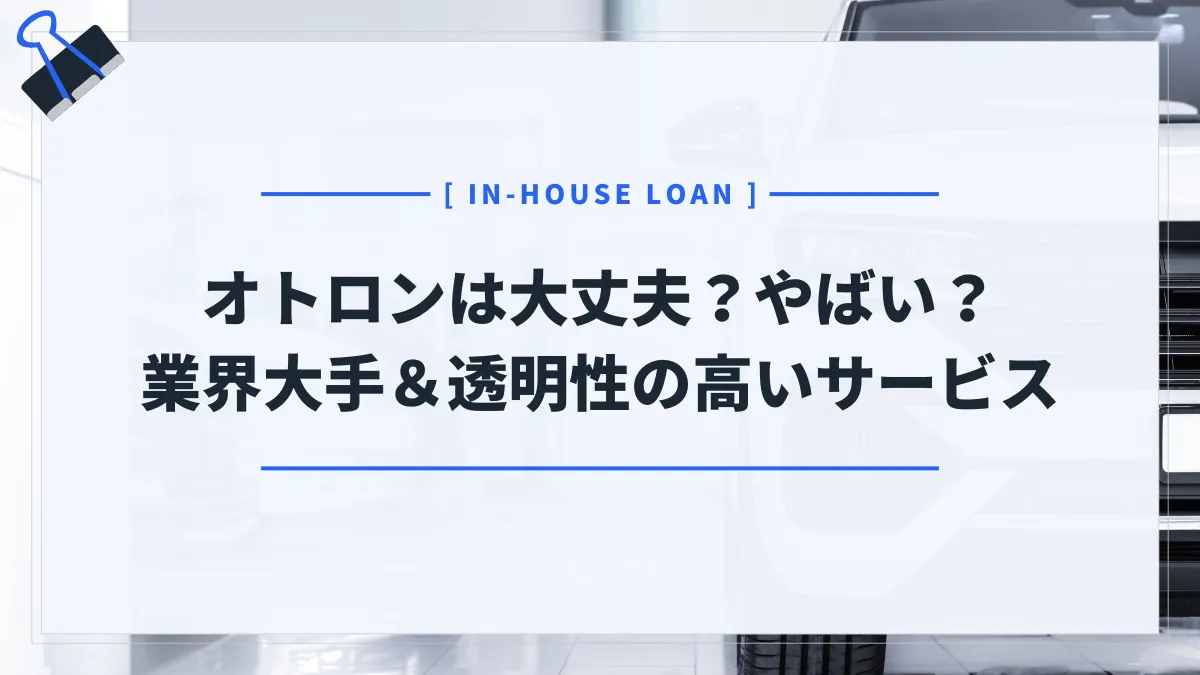 自社ローンとはいえ審査通過に不安がある人は、ぜひ参考にしてください。また、モビローンよりおすすめの自社ローンである「オトロン」についても紹介しています。オトロンは業界大手の自社ローンであり、オイル交換無料特典や全車修復歴(事故歴)なしといった、お得&安心のサービスを提供しています。自社ローンの利用を検討しているなら、この機会にオトロンについてぜひ知ってください。
