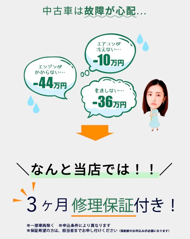 \クルマテラスの3ヶ月間無料修理保証/