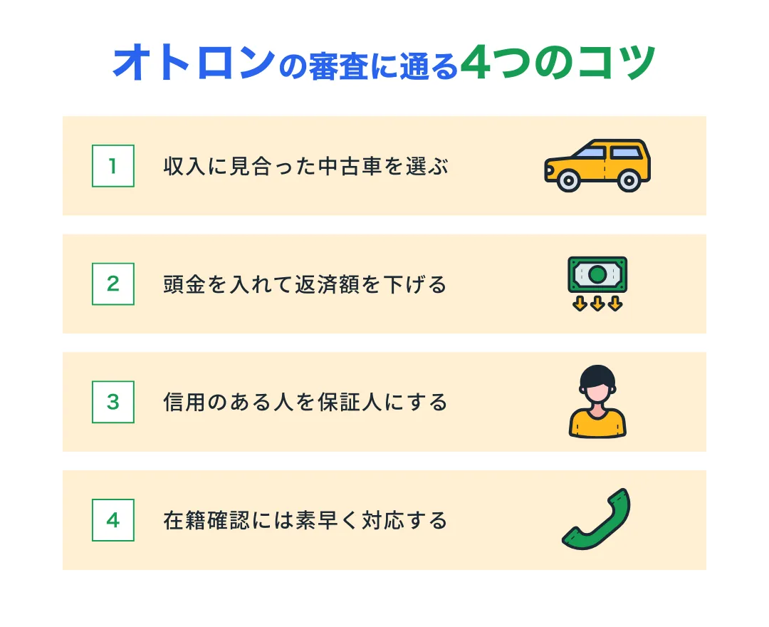 オトロンの審査内容を整理したところで、次にオトロンの審査に通るコツを解説していきます。