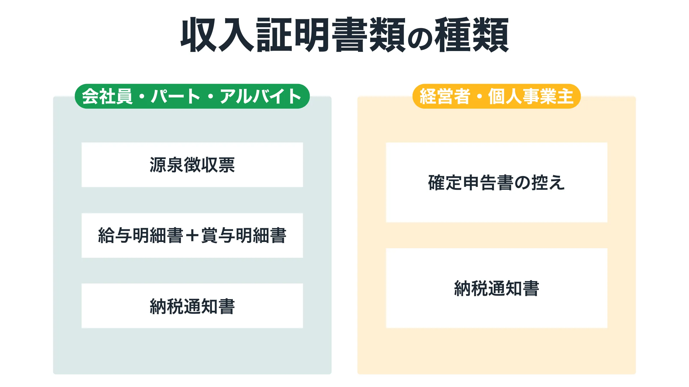 次に、収入証明書類の提出をもって返済可能額などをチェックしています。具体的には、源泉徴収票や確定申告書の控えなどが収入証明書として提出可能です。