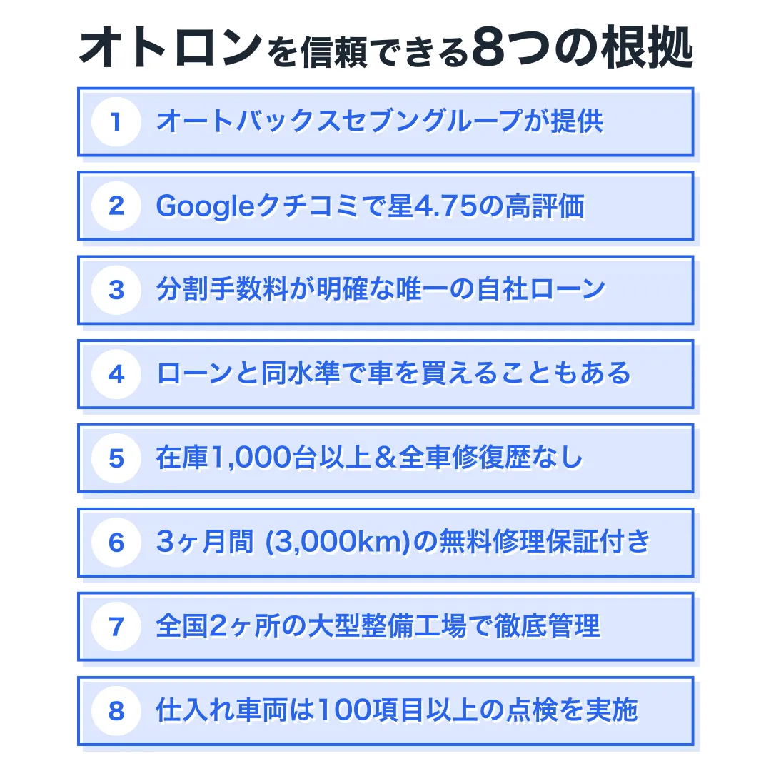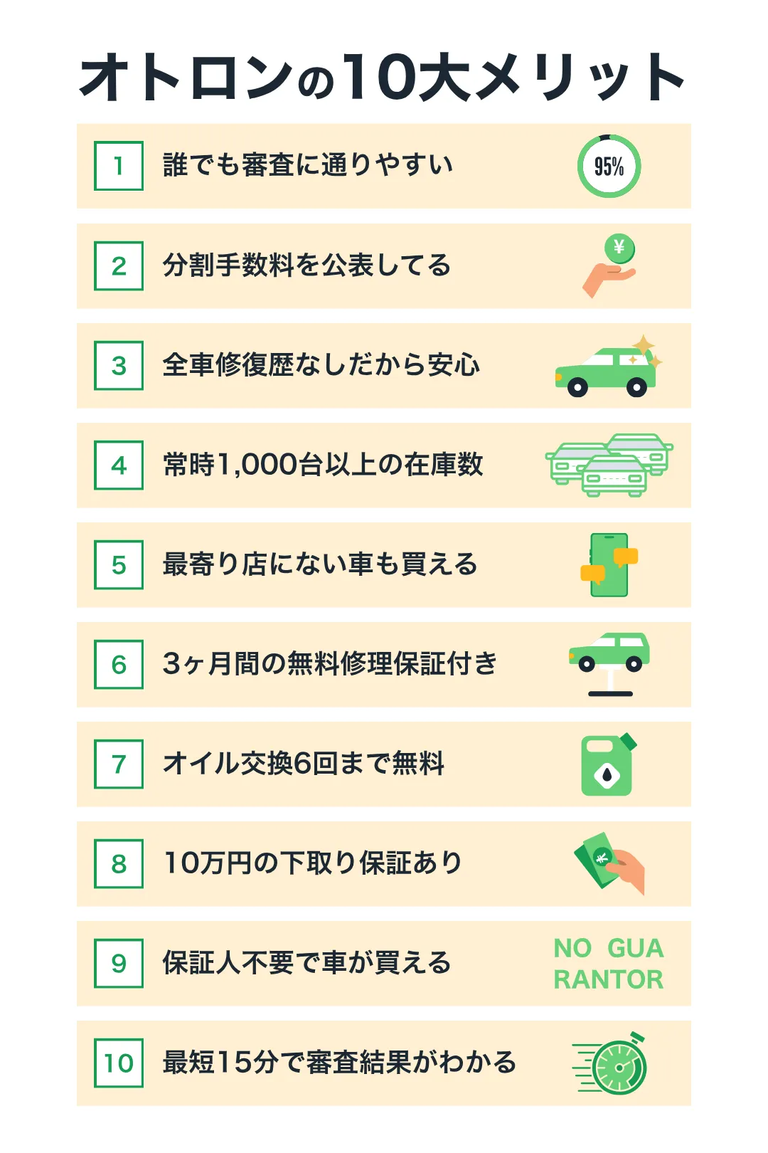 - オトロンは大丈夫?やばい?答え→全車修復歴なし&透明性が高い業界大手の自社ローン