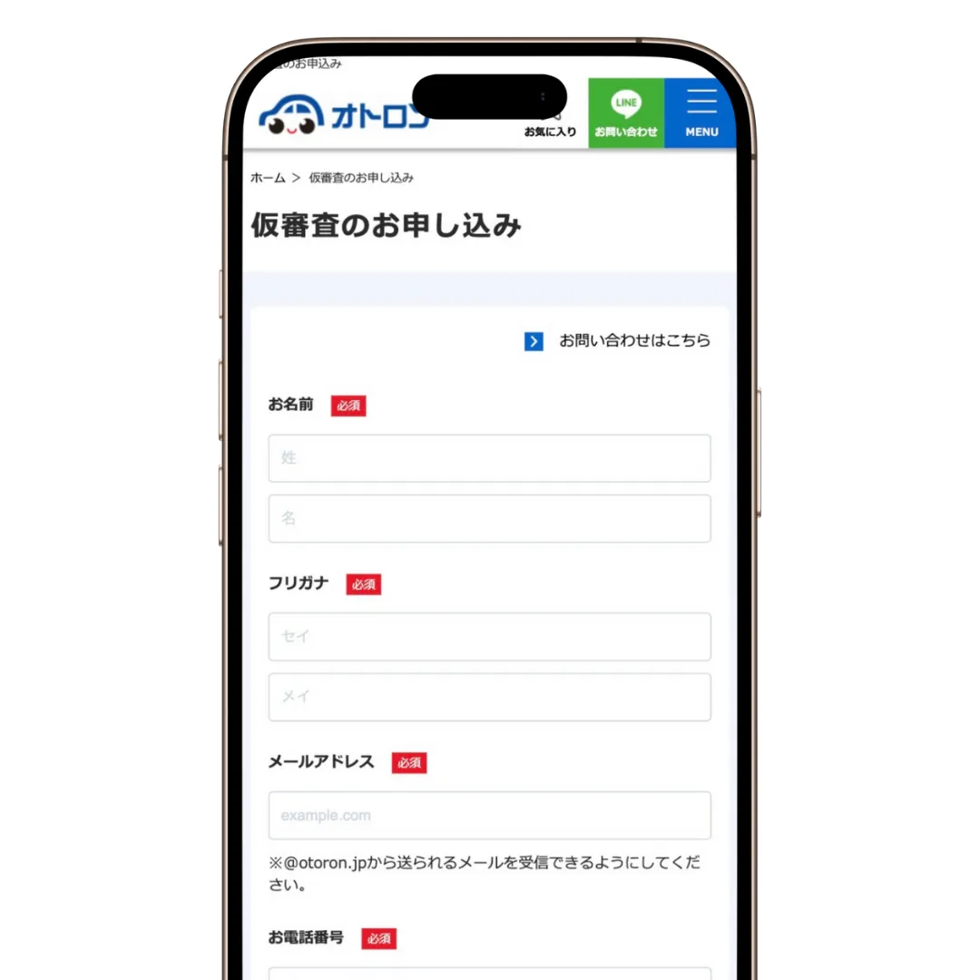 審査通過率95%で誰でも審査に通りやすいため、さっそくオトロンの仮審査に申し込んでみてください。申し込みは1分で完了し、仮審査結果は最短15分で届きます。業界大手の自社ローンを利用できるかどうか、仮審査で確かめてみましょう。