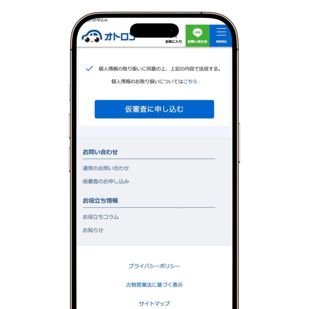 以上で、オトロンの自社ローンの仮審査申し込みは完了です。