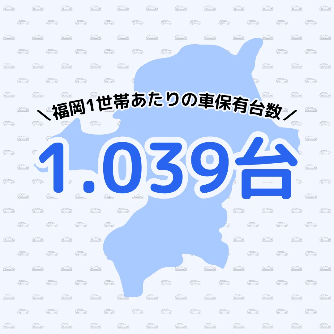 福岡における車の普及台数は、1世帯あたり1.039台であり、1世帯につき1台以上の車があります。