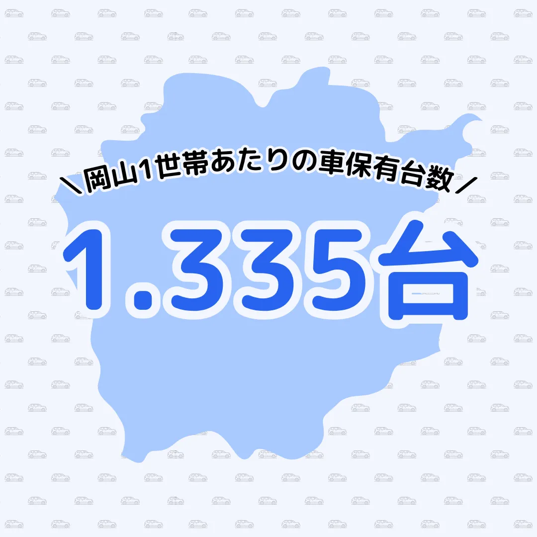ちなみに、岡山の自動車普及台数は1世帯あたり1.335台となっており、1世帯につき1台以上の車を保有していることになります。