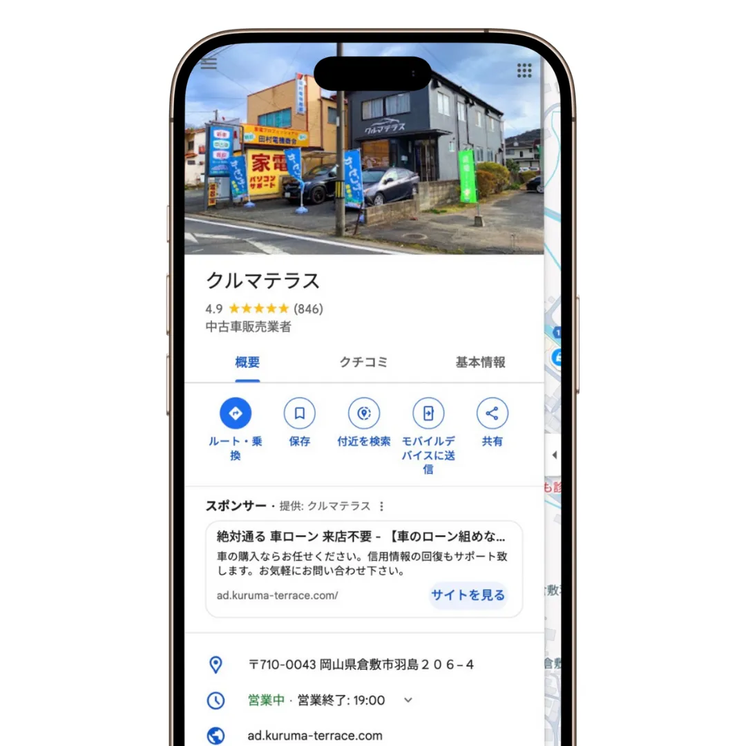 クルマテラスは全国展開の信用回復ローンであり、岡山県倉敷市にも店舗を構えています。